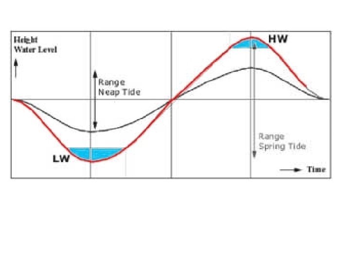 Tidal Forces • Spring tides- Sun and Moon aligned either on same or opposite sides “springs forth” Highest highs and lowest lows, greatest range • Neap tides – sun and moon at 90 degrees to each other “Barely touching”, Lower highs and Higher lows, least range • Waxing and Waning moon half way between spring and neap tides