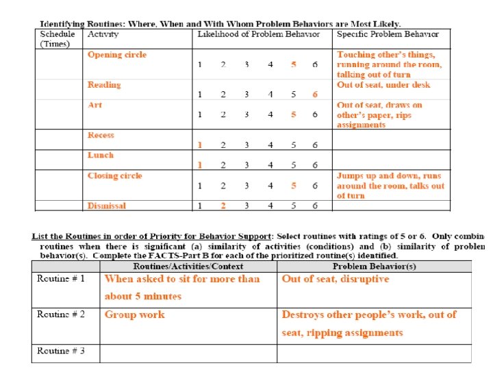 FACTS Step 5: • List the Routines in order of Priority for Behavior Support • FACTS Part B will be used for each routine/behavior you list here (may be sooner or later)