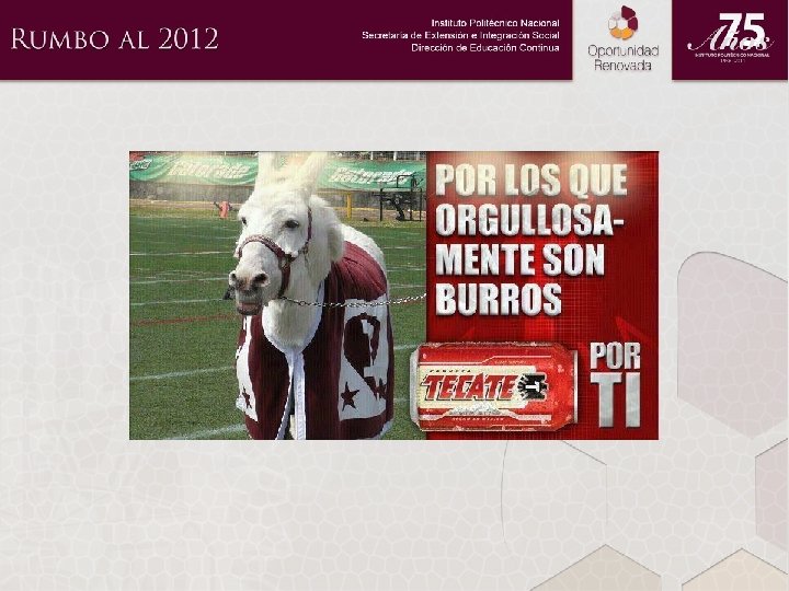 QUE ESPERAMOS • INCREMENTO DE 50 % DE RECURSOS AUTOGENERADOS • CONSOLIDACIÓN DE LA OFICINA DE EXTENSIÓN DE SERVICIOS • II GNERACIÓN ESPECIALIDAD EN VALUACIÓN INMOBILIARIA • CAPACITACIÓN A CECYTE EN TODO EL ESTADO • AMPLIACIÓN DE LA OFERTA DEL CATÁLOGO DE SERVICIOS • UNIDADES MÓVILES PROYECTO INEA • VI FERIA INTERNACIONAL DEL LIBRO • II CARRERA 11 k IPN 2012 RETO A VENCER • AMPLIACIÓN DE INFRAESTRUCTURA