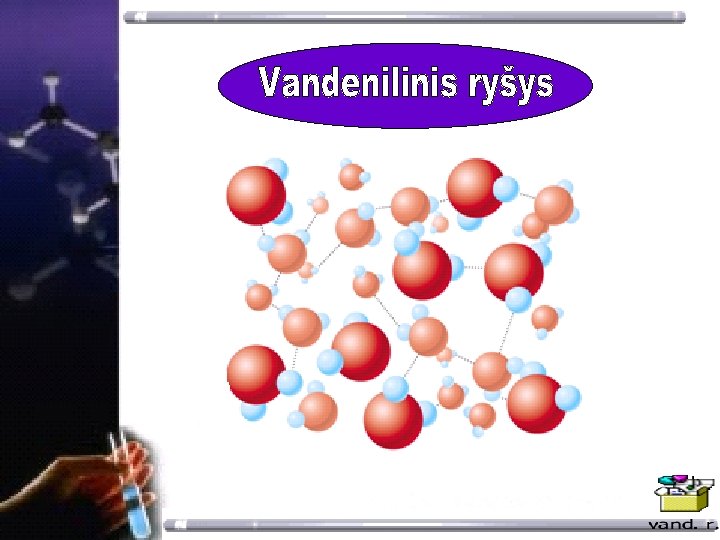 Vandenilinis ryšys( 0, 175 nm) Polinis ryšys (0, 101 nm) Vandenilinis ryšys – trauka tarp polinių molekulių, turinčių vandenilį , ir kitos molekulės nepadalintųjų ektronų porų