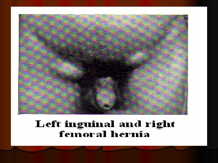 Kasık fıtıkları 3 l Pantolon l Aynı herni: tarafta, birlikte direkt ve indirekt fıtığın olmasına pantolon fıtığı denir. l Tedavide en iyi yaklaşım inferior epigastrik damarlar bağlanıp direkt ve indirekt fıtık kesesinin tek bir keseye indirgenerek onarımdır (Hoquet manevrası).