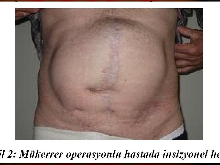 İnsizyonel Herni l İatrojenik bir fıtık; abdominal operasyon geçiren hastalarda %0. 5 -13. 9 oranında görülür. l %56’sı pos-op 1. yılda %35’i 5. yıldan sonra l %17’sinde inkarserasyon