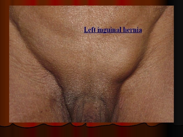 Kasık fıtıkları 4 l Femoral l İnguinal herni: ligamanın arkasından, femoral kılıf boyunca femoral damarların medialinde femoral kanala fıtıklaşma l Fizik egzersiz ve gebelikle ilişkili l Kadınlarda daha sık l İnkarserasyon/strangülasyon riski yüksek (%30 -40)
