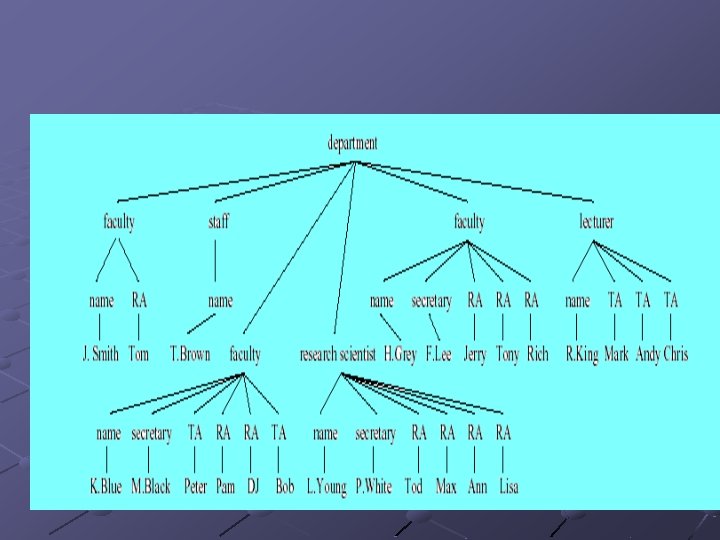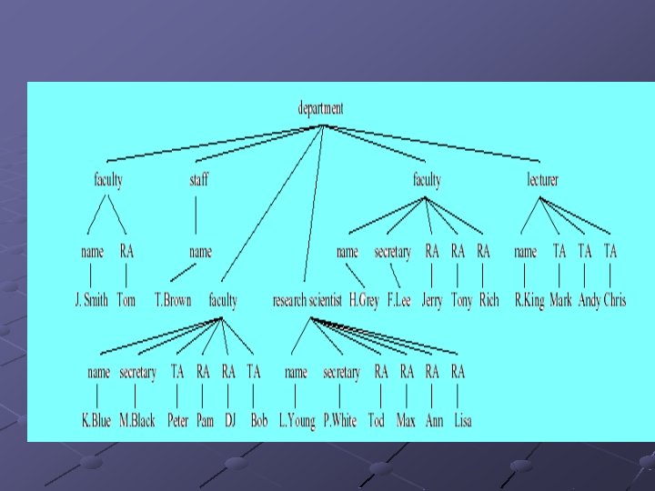 Motivations and Related Work Mapping techniques between tree-based XML data to flat relational schema Problems: Ø Ø XML has very rich tree structure. Relational has rigid table structure. A simple tree schema produces complex relational schema with many tables. A simple XML query get translated into expensive sequences of joins in relational database.