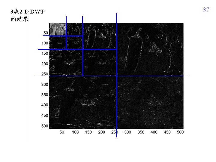36 原影像 Pepper. bmp x 1, L[m, n] x 1, H 2[m, n] 2 -D DWT 的結果 x 1, H 1[m, n] x 1, H 3[m, n]