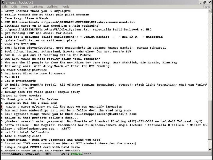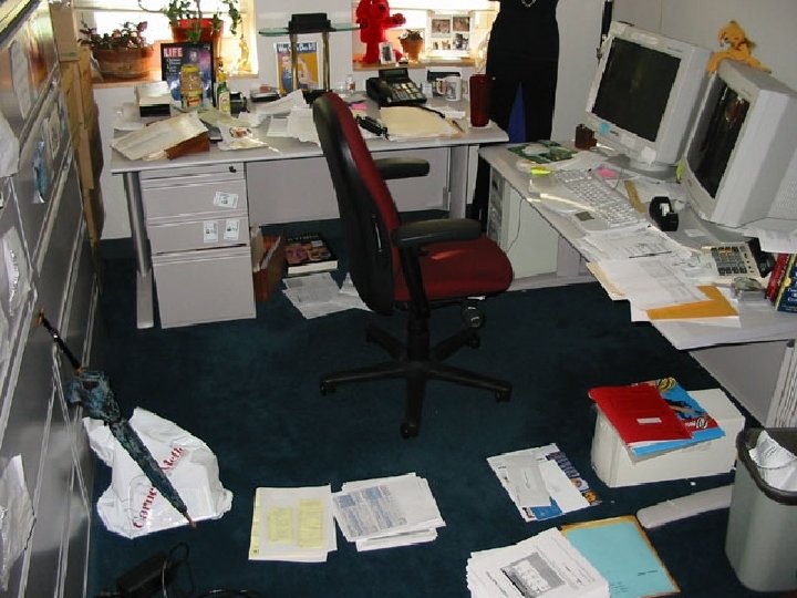 Paperwork • Clutter is death; it leads to thrashing. Keep desk clear: focus on one thing at a time • Touch each piece of paper once • Touch each piece of email once; your inbox is not your TODO list