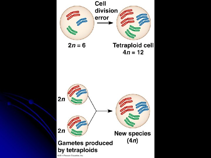 II. Speciation B. Sympatric Speciation 1. Plants a. Autopolyploidy • Results from error in mitosis b. Allopolyploidy • Error in meiosis + hybridization