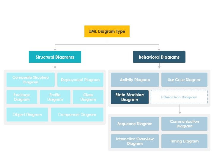 State Machine Diagram • State Machine Diagrams show the different states of an entity. • It can also show an entity responds to various events by changing from one state to another. • State machine diagram is a UML diagram used to model the dynamic nature of a system. • “A state is an abstraction of the attribute values and links of an object. Sets of values are grouped together into a state according to properties that affect the gross behavior of the object. " • A state is a constraint or a situation in the life cycle of an object, in which a constraint holds, the object executes an activity or waits for an event. • A state machine diagram is a graph consisting of: States (simple states or composite states) State transitions connecting the states Example: