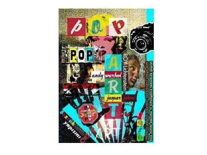 • Bahkan bisa saja mereka mengambil sepasang sandal disandarkan diatas rongsokan meja kemudian diatur sedemikian rupa dan akhirnya menjadi sebuah karya untuk dipamerkan • Dalam perkembangannya seni pop atau poa art diimajinasikan dengan berbagaimacam gaya berkat bantuan teknologi komputer • Warna maupun bentuk yang divisualisasikan penuh kecerahan suasana dengan warna yang mencolok atau menggairahkan • Beragamacam ornamen disatukan dengan komposisi yang beragam hingga menjadi sebuah karya yang ramai dan dinamis