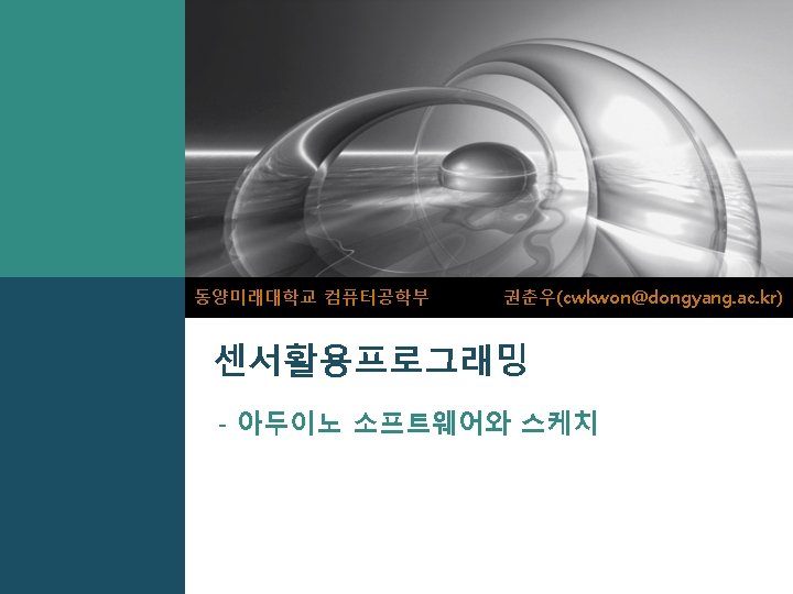 Arduino Software (IDE) LOGO § 라이브러리(Libraries) ü Sketch에 추가 기능을 제공 ü #include 명령 사용 • Sketch의 상단 삽입한 Sketch와 함께 compile • 스케치 > Include Library > (라이브러리 선택) • (예) Dongyang Mirae University 센서활용프로그래밍 10 prepared by Choon Woo Kwon