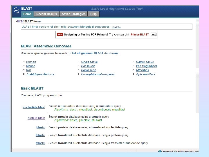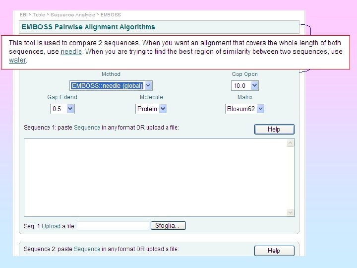 Allineamento di due sequenze: BLAST: bl 2 seq LALIGN: http: //www. ch. embnet. org/software/LALIGN_form. html EMBOSS: http: //www. ebi. ac. uk/emboss/align/