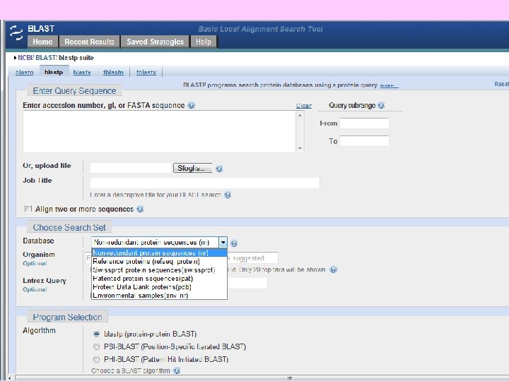 FASTA: http: //fasta. bioch. virginia. edu/fasta_www 2/fasta_www. cgi? rm=select&pgm=fap