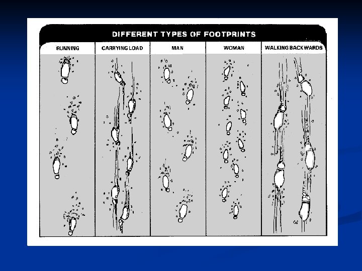 Information Gained Wear patterns (cuts, nicks, scratches) n Size and style n Gait patterns, length of stride n Pigeon toed? n