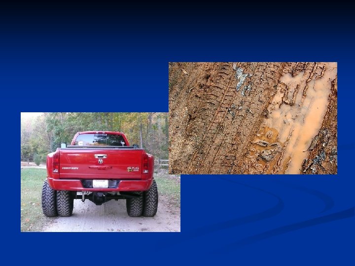 Tire Impressions n n Class Evidence (indicates manufacturer & size) Provides information about tire size, tread width/design, manufacturer, turning radius & tire position A turn is the best place to obtain tire prints (provides information about wheelbase, track width, turning radius) Wear patterns: help to individualize a tire print (may be due to improper alignment, tears, or gouges)