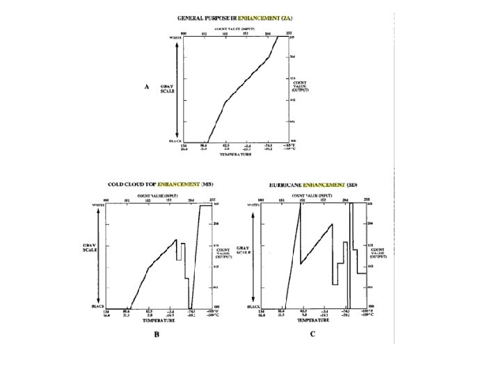 IR Enhancement • Steep Linear Enhancement: Going through a wide range of shades over a limited temperature range • Contouring: Discontinuous change of shading at certain temperatures to indicate specific values • Color enhancement: Using color to highlight certain temperature values.