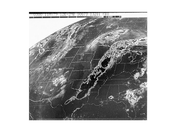 Note the differences in land vs water temperatures in this nighttime IR image. The dark specks are lakes, large rivers and reservoirs. The Great Lakes are also contrasted well against the adjacent cold land mass.