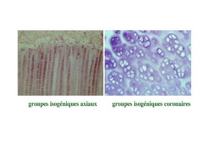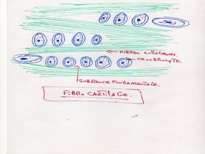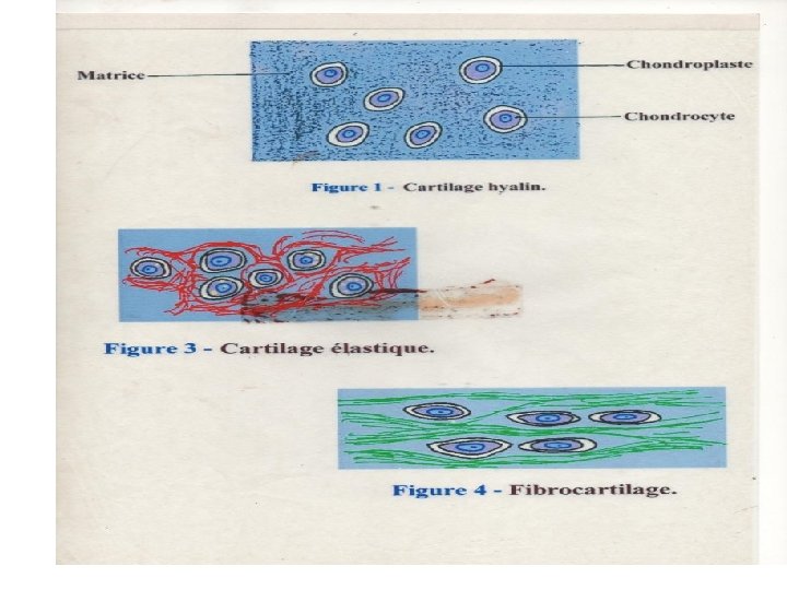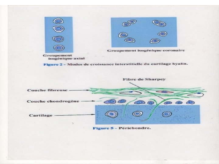 • enfermées dans des cavités (ouchondroplastes) • responsables de l'élaboration -de la substance fondamentale (riche en chondromucoprotéines) -et des fibres de collagène.