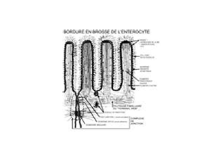 B-différentiations de la membrane plasmique apicale: 1)microvillosités a)microvillosités isolées: b)microvillosités groupées: -plateau strié de l’ entérocyte. -bordure en brosse des cellules du tube contourné proximal du rein.