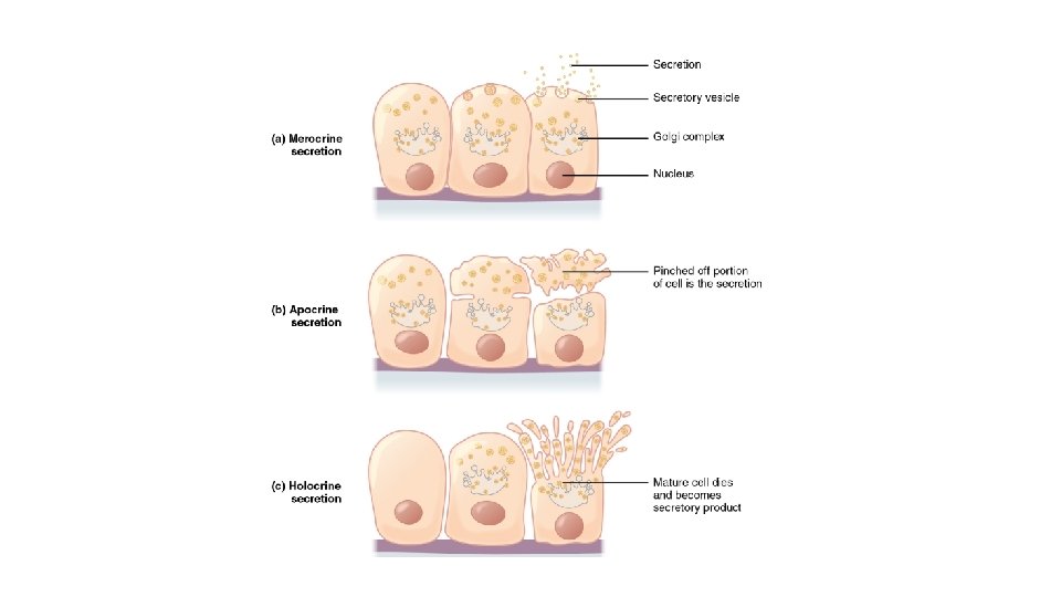 Multicellular Exocrine Glands • Multicellular exocrine glands are composed of a duct and a secretory unit • Classified according to: • Duct type (simple or compound) • Structure of their secretory units (tubular, alveolar, or tubuloalveolar)