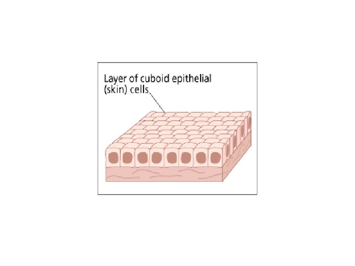 Epithelial Tissue • Grouped based on shape and arrangement • Shape – Squamous – flat and scalelike – Cuboidal – cube – Columnar – higher than wide • Arrangement – Simple – single layer of same shape – Stratified – many layers of same shape – Transitional – several layers of different shaped cells