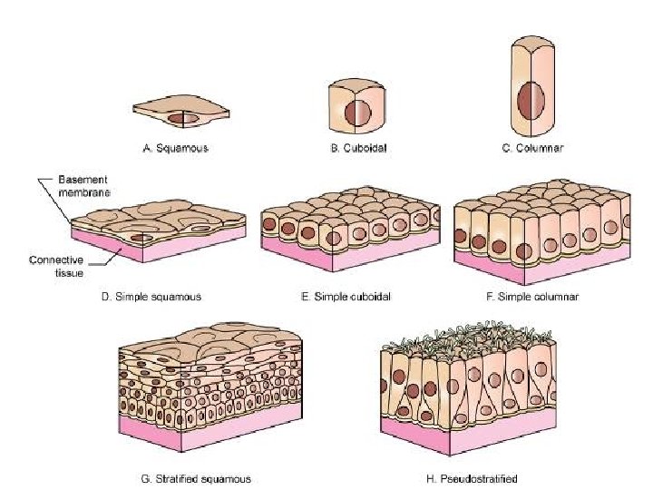 Classifications of Epithelia NUMBER OF CELL LAYERS. Single layer is called _____ More than one layer is called _____ SHAPE OF CELLS. Squamous, cuboidal, and columnar If there is more than one layer, the name is based on shape of top layer of cells. PRESENCE OF CILIA OR MICROVILLI.