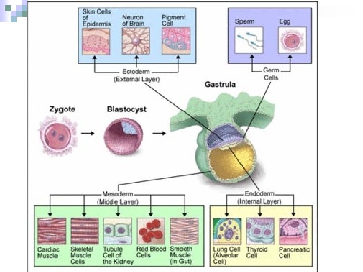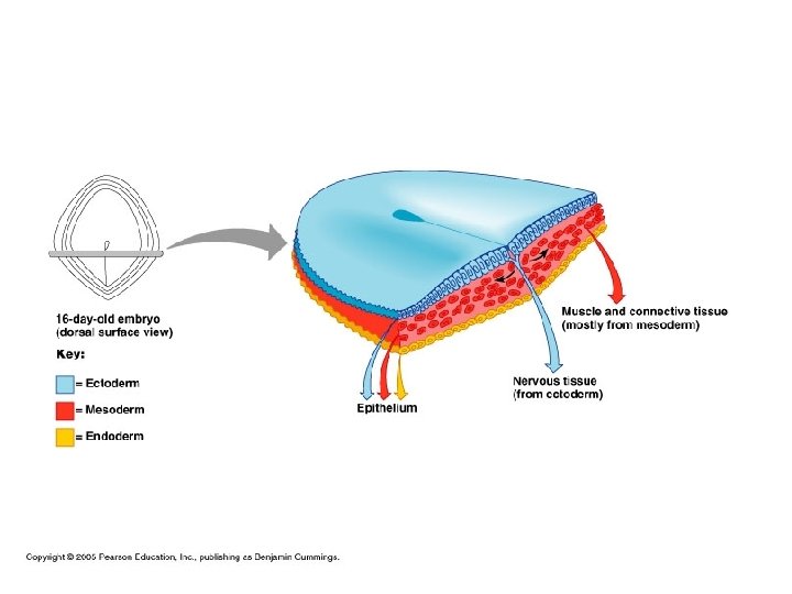 Germ Layers All tissues of body develop from 3 primary germ layers that form in a human embryo. n Mesoderm gives rise to all connective tissues and most muscle tissues as well as some epithelial tissue n Ectoderm gives rise to nerve tissue and epithelial tissue. n Endoderm gives rise to epithelial tissue. n