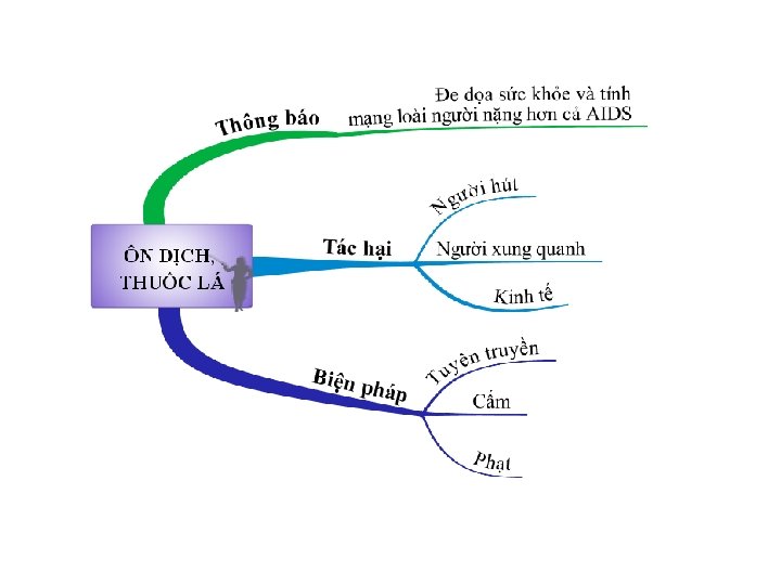 3, Biện pháp chống thuốc lá. - Cấm hút thuốc lá ở những nơi công cộng. Phạt nặng những người vi phạm. Cấm quảng cáo thuốc lá. Mọi người đứng lên chống lại. Cấm trồng và buôn bán thuốc lá. Ngày 31 - 5 hàng năm: Thế giới không khói thuốc lá.