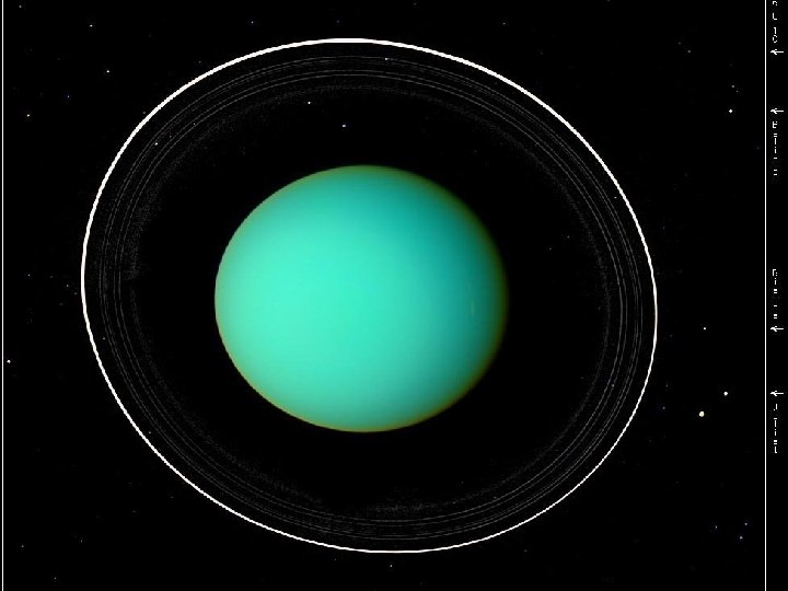 Titania Statistics • • • • • Discovered by William Herschel Date of discovery 1787 Mass (kg) 3. 49 e+21 Mass (Earth = 1) 5. 8400 e-04 Equatorial radius (km) 788. 9 Equatorial radius (Earth = 1) 1. 2369 e-01 Mean density (gm/cm^3) 1. 70 Mean distance from Uranus (km) 435, 840 • • • • Rotational period (days) 8. 705872 Orbital period (days) 8. 705872 Mean orbital velocity (km/sec) 3. 65 Orbital eccentricity 0. 0022 Orbital inclination (degrees) 0. 14 Escape velocity (km/sec) 0. 768 Visual geometric albedo 0. 27 Magnitude (Vo) 13. 73