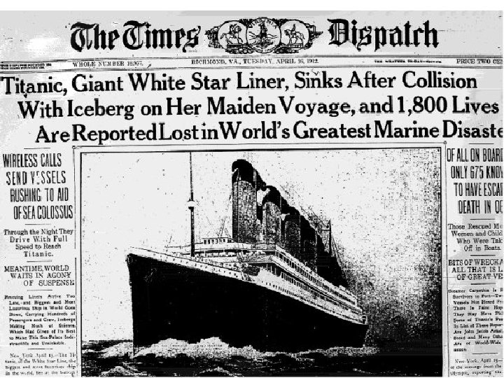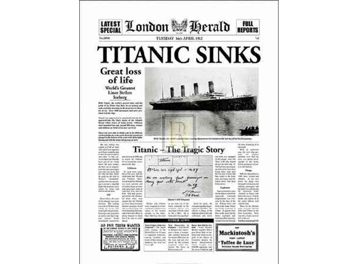 Titanic Newspaper Headlines Look at the following newspapers from 1912. Imagine the public reaction to Titanic sinking – it was supposed to be ‘unsinkable’. How are these newspapers different to newspapers you might see now?