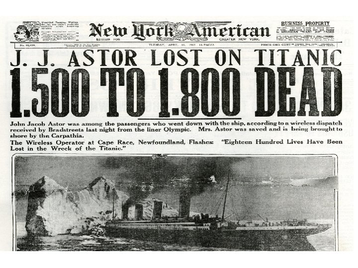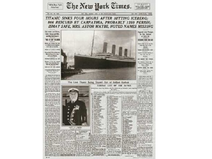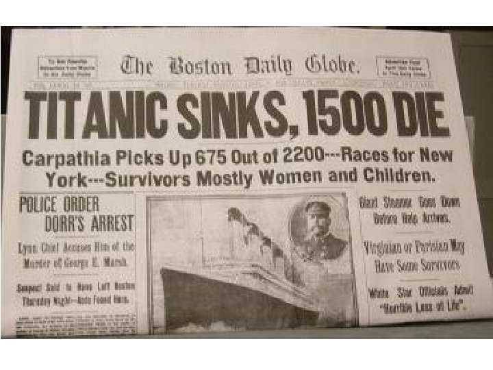 TITANIC Learning Objectives: -To identify the language, structure and layout conventions of newspaper articles. - To write a newspaper article following newspaper conventions. - To write appropriately within the social historical context of 1912.