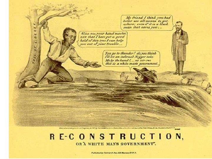 Opponents waged a propaganda war against Reconstruction: • Southerners who cooperated were called scalawags – Many were farmers who never owned slaves • Northerners who ran the programs carpetbaggers – The name came from the suitcases they carried, implying they had come to the South merely to stuff their bags with will-gotten wealth