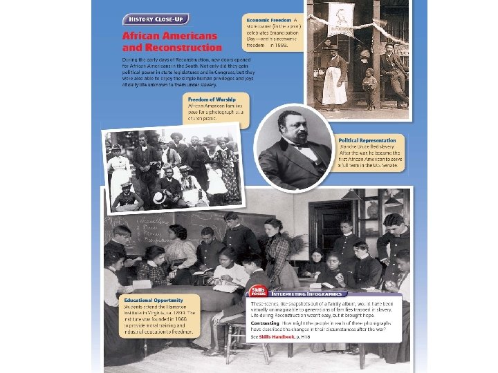 Worse, throughout the 1860 s and 1870 s, the Supreme Court consistently restricted the scope of the 14 th and 15 th Amendments • In United States v. Reese, the court legalized “grandfather clauses, ” poll taxes, property requirements, and other restrictions on voting privileges – Soon nearly all Southern states had restrictive laws that effectively prevented African Americans from voting • In the Slaughter-House case, the court ruled that the 14 th Amendment applied only to the federal government, not to state governments, an opinion the court strengthened in United States v. Cruikshank