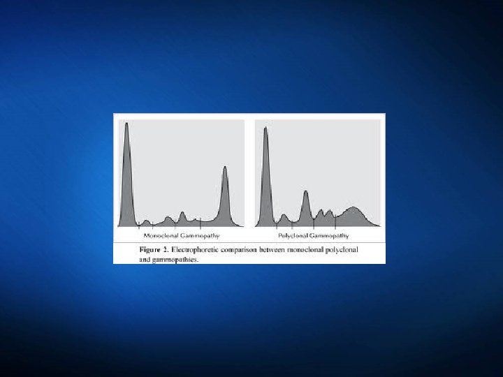 Clinical Applications of IEP The most common application of IEP is in the diagnosis of: Monoclonal gammopathy. Bence-Jones Proteins Macroglobulins Polyclonal gammopathy Multiple Myeloma: plasma cell malignancy A clone of plasma cells proliferates Produces a single type of immunoglobulin Polyclonal gammopathy, are observed in liver disease, rheumatoid disorders, chronic infections