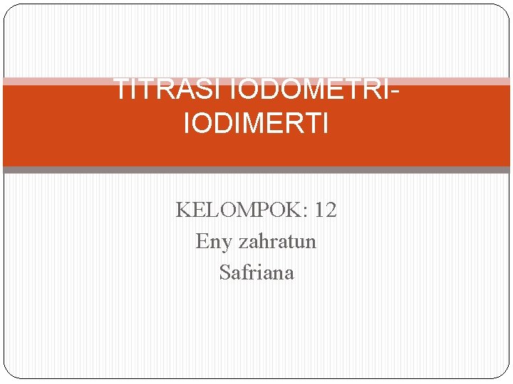 TITRASI IODOMETRIIODIMERTI KELOMPOK 12 Eny zahratun Safriana APA