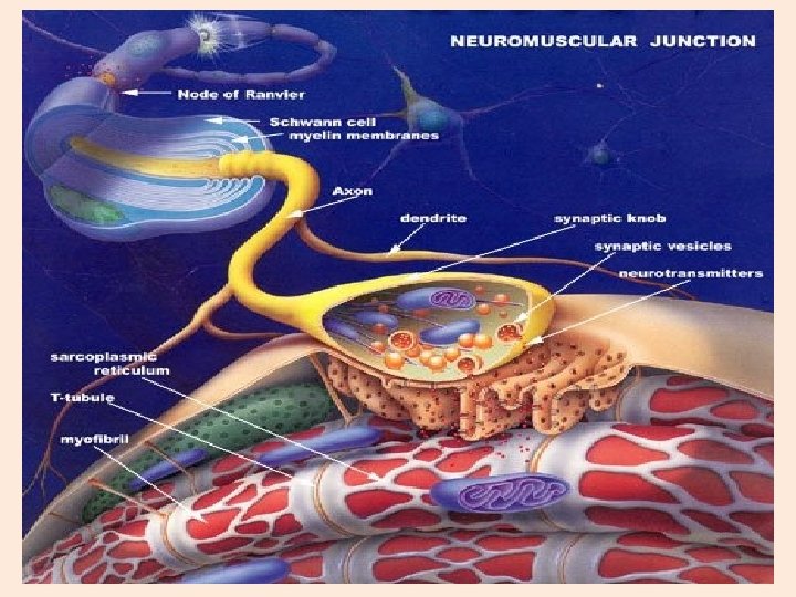Do każdego włókna dochodzi zakończenie nerwu ruchowego zwane płytką motoryczną lub połączeniem nerwowo-mięśniowym. Ogólna zasada budowy płytki motorycznej jest podobna do budowy synapsy nerwowej. Mediatorem jest tu acetylocholina. Jedno włókno nerwowe ruchowe może unerwiać od 1 do ok. 160 włókien mięśniowych. Grupa włókien mięśniowych unerwionych przez jedno włókno nerwowe nazywa się jednostką motoryczną. Połączenie nerwowo-mięśniowe: 1 -akson 2 połączenie synaptyczne 3 -mięsień szkieletowy 4 -miofibryl