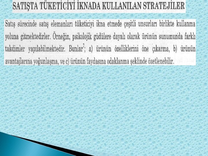 SATIŞTA TÜKETİCİYİ İKNADA KULLANILAN YÖNTEMLER a) Ürünün özelliklerini öne çıkarma � b)Ürünün avantajlarına yoğunlaşma � c) Ürünün faydasına odaklanma �