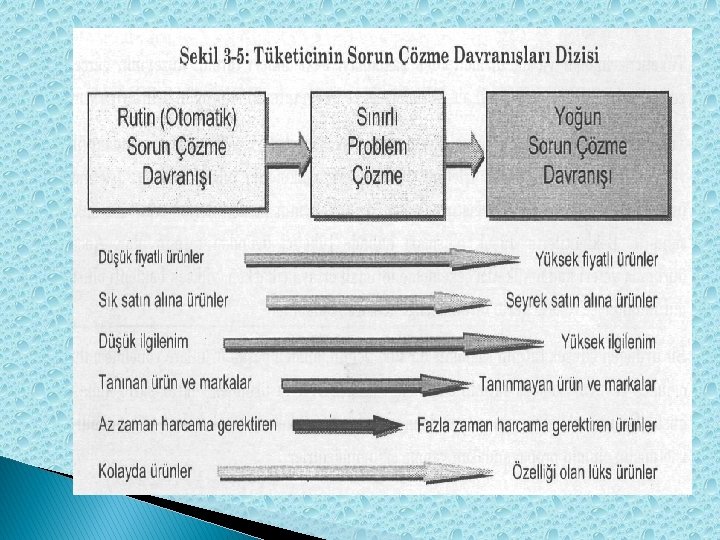 � Ürünlere tüketicilerin verdiği değer açısından farklılıkların olmaması sebebiyle tüketiciler şekerleme, sakız, kibrit gibi ürünlerde fazla bir araştırmaya gerek duymaksızın bu tür ürünleri satın alma yoluna giderler. � Sınırlı problem çözmede ise ürünün özelliklerinin göreceli önemli olduğu ve ürünün fiyatının da nispeten yüksek olduğu durumlarda uygulanmaktadır. Bu strateji tüketiciler tarafından müzik seti, takım elbise gibi ara sıra satın alınan ürünlerin satın alınması sırasında kullanılır.