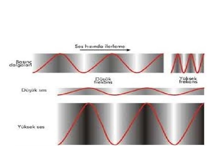 • FREKANS: Sesin 1 saniyedeki titreşim sayısına denir. Yani 1 sn’deki salınım sayısıdır. Birimi hertz dir. (Hz ) • İnsan kulağı 20 -20000 Hz arasındaki sesleri duyar. • Saniyede 20 den az olan titreşimlere subsonik (infrasonik), 20000 üzerinde olanlara ultrasonik sesler denir • Konuşma sesleri 500 -2000 Hz dir. • Frekans arttıkça ses tizleşir, düşük frekanslar pes sesleri oluşturur.
