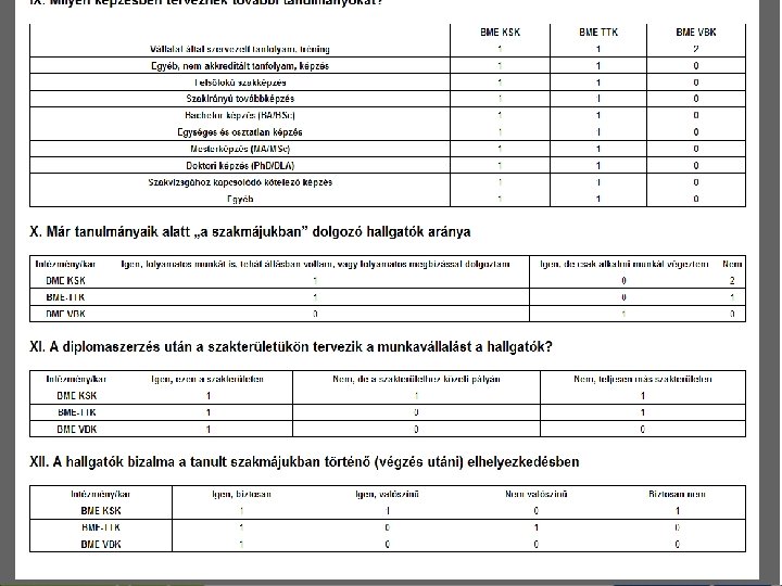 Lehetséges kérdések, problémák • • • Miért nem volt elérhető februárban az online kérdőívező, és miért csak áprilisra vált elérhetővé? Miért volt olyan időszak, amikor nem volt elérhető a kérdőívező rendszer? Túl hosszúak az intézményi online kutatásokhoz kiadott kérdőívblokkok. . . Az adatszolgáltatás kapcsán sok volt a bizonytalanság: hogyan kell adatokat adni, kinek és hová stb. Mi ezzel kapcsolatban most az Educatio álláspontja? Miért csak részadatbázison dolgozunk (a tervezett 5000 helyett 2700 fővel)? Hol találhatók a hallgatói vizsgálat eredményei? Hogyan jutottunk a személyes megkereséshez szükséges hallgatói adatokhoz? Milyen a kutatás mintája, reprezentativitása? A nagymintás reprezentatív kutatás nem lehet negatív hatással az ezzel egyidőben folyó intézményi felmérések válaszadási arányára?