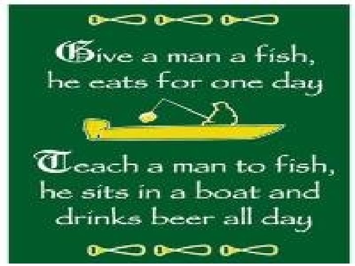 “Give a man a fish and you’ll feed him for a day, teach a man to fish and you’ll feed him for a life”