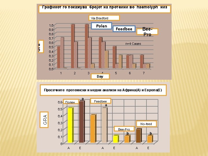[e}erno-medni-proteinski poga~i Pri prateweto na 30 p~elni zaednici vo tekot na tri godini na koi im se davani {e}ernomedni poga~i so dodatok na polen od leska (le{nik) konstatirana e zgolemena produktivnost na legloto za 77 %, iako polenot od leska ne kotira visoko na skalata za hranlivost. Dokolku na poga~ite so polen od leska im se dodade pivski kvasec i mleko produktivnosta se zgolemuvala i do 100 %. Pri toa p~elite hraneti so medno-proteinska smesa vo svoeto telo sodr`ele okolu 52 % proteini, dodeka tie koj se hranele so {e}eren sirup imale samo 35 % proteini vo svoeto telo. Ovie rezultati poka`uvaat kolku protenskata hrana e va`na za kvaliteten proleten razvoj na p~elnite dru{tva i spored toa ne treba ve}e za toa da postoi dilema. Hranata bogata so proteini e mnogu va`na i za p~elnite zaednici koi se zaboleni od nozemoza-prolivi. Kako zamena za proteinska hrana p~elarite koristat: §Pivski kvasec, §Aktiven kvasec, §Priroden bioregulator (sto~en kvasec)