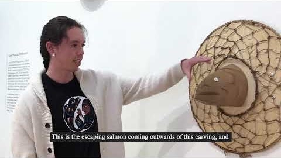 How many salmon do you see? What Coast Salish design elements do you see? What else do you see? Image 6: Dylan Thomas, Net Work, 2018. How many circles do you see? Ovals? Trigons?