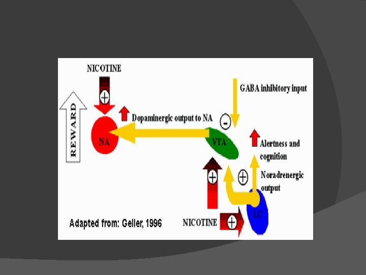 Indications of nicotine’s addictive nature, in 2006: 23 million tried cocaine; 600, 000 used weekly (2. 6%) and only a fraction used daily 72 million tried marijuana; 6. 8 million used weekly (9. 4%) and smaller fraction used daily 198 million tried alcohol; <48 million drank weekly (27%) and 20 million drank daily (11%) 162 million tried smoking; 60 million in the past month (37%) and 37 million smoked daily (22. 7%) SAMHSA 2006