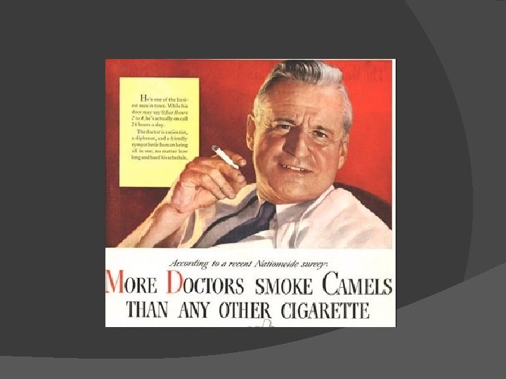 � Tobacco is native to the western hemisphere � It was touted as a plant of the gods in ancient middle-American cultures � The use of tobacco didn’t occur in Europe and Asia until the late 1400 s � Initial use was largely medical rather than recreational; thought to be a panacea, including treatment for indigestion, abscesses, fistulas, and sores