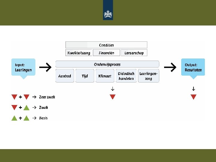 Wat doen wij? • Oordelen of een school onderwijs biedt dat van ‘voldoende kwaliteit’ is. • Oordelen of school zich aan de wet houdt. • Per onderwijssoort doen wij de volgende uitspraken over de kwaliteit (arrangementen): • • Basis (vertrouwen) Aangepast (zwak, zeer zwak)