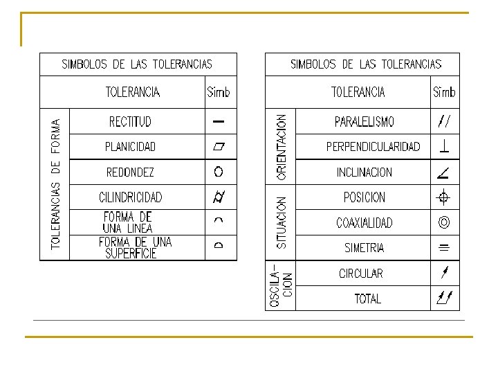 DESCRIPCION DE LAS TOLERANCIAS GEOMETRICAS n COTAS TEORICAS EXACTAS n SIGNIFICADO DE RECTANGULO DE LA TOLERANCIA