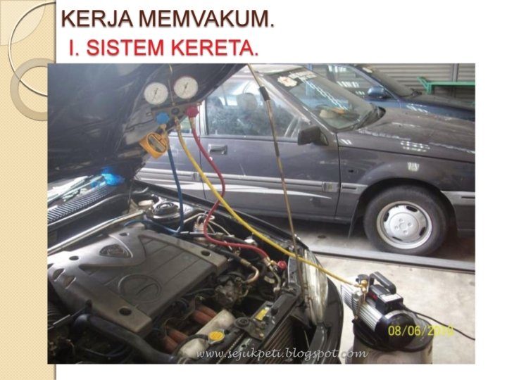 MENGUJ I I KEBOCORAN nilai vakum - - 30 in. Hg (inci raksa) www. sejukpeti. blogspot. com - SELEPAS KERJA MEMVAKUM SISTEM, BIARKAN MANIFOLD DALAM MASA 15 MINIT. - JIKA JARUM PENUNJUK TIDAK NAIK KE ATAS, BERMAKNA SISTEM BERADA DALAM KEADAAN BAIK (TIDAK BOCOR).