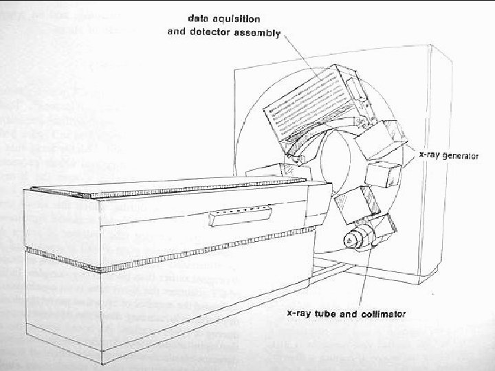 Tomógrafo n Composto por um conjunto de sistemas : • Sistema de emissão de raio X; (Gantry) • Sistema de detectores de radiação; • Sistema de reconstrução de imagem; • Sistema de armazenamento e apresentação de imagens (HD/teclado /monitor); • Mesa de exame; • Sistema de documentação (impressora multi-formato ou laser comum ou seca).