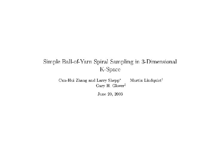 Functional MRI • When you are thinking about lunch, which part of your brain is active? When you are instantaneously recognizing Monica Lewinsky, how is this done? • In f. MRI, the difference of the spin density pre and post task is taken. This allows one to distinguish oxy and deoxy hemoglobin. But this has to be done in real time or we will never be able to see where the image of Monica is stored etc. How to sample the Fourier transform of the difference in real time. It costs 1 ms to sample f^(k) at one k.
