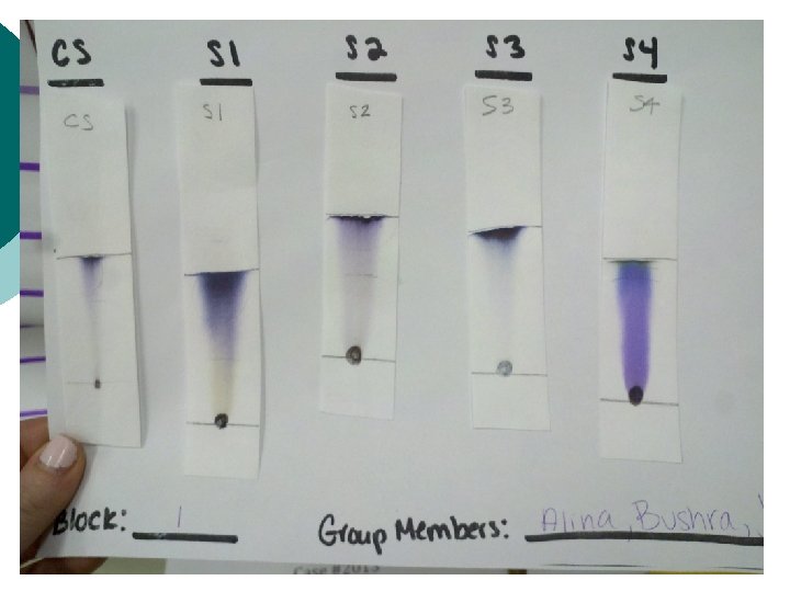 Least dense pigments are drawn farther up the paper More dense pigments remain towards the bottom of the paper